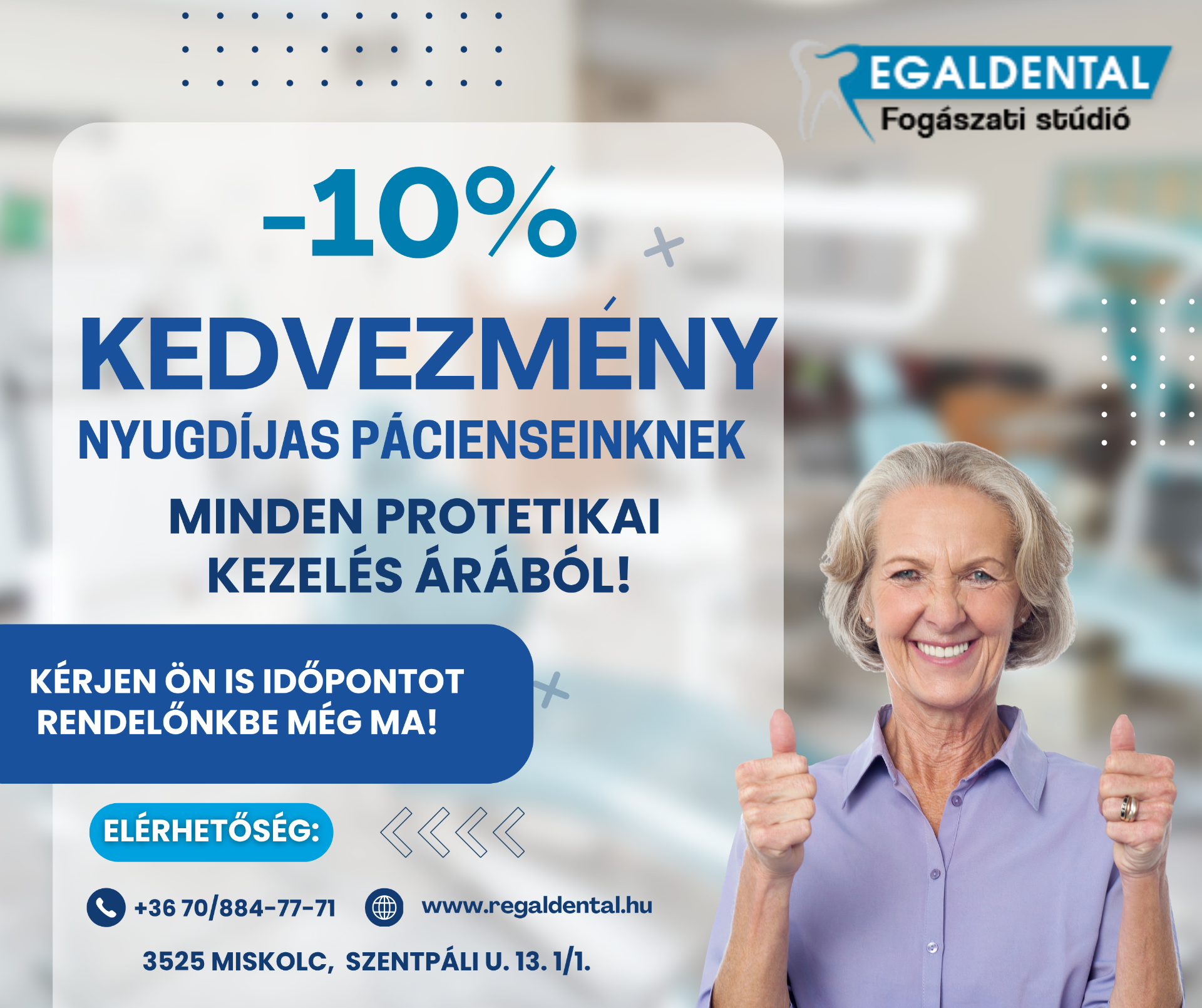Ezért most 10% kedvezményt biztosítunk nyugdíjas pácienseink számára protetikai kezeléseink árából!(ide tartoznak például: kivehető és rögzített fogpótlások, koronák, hidak stb.)